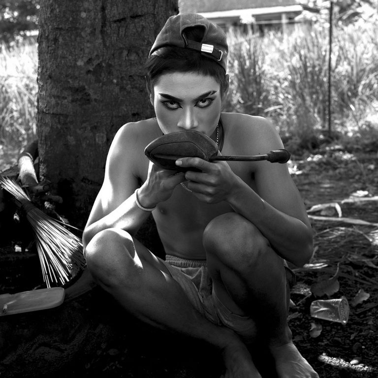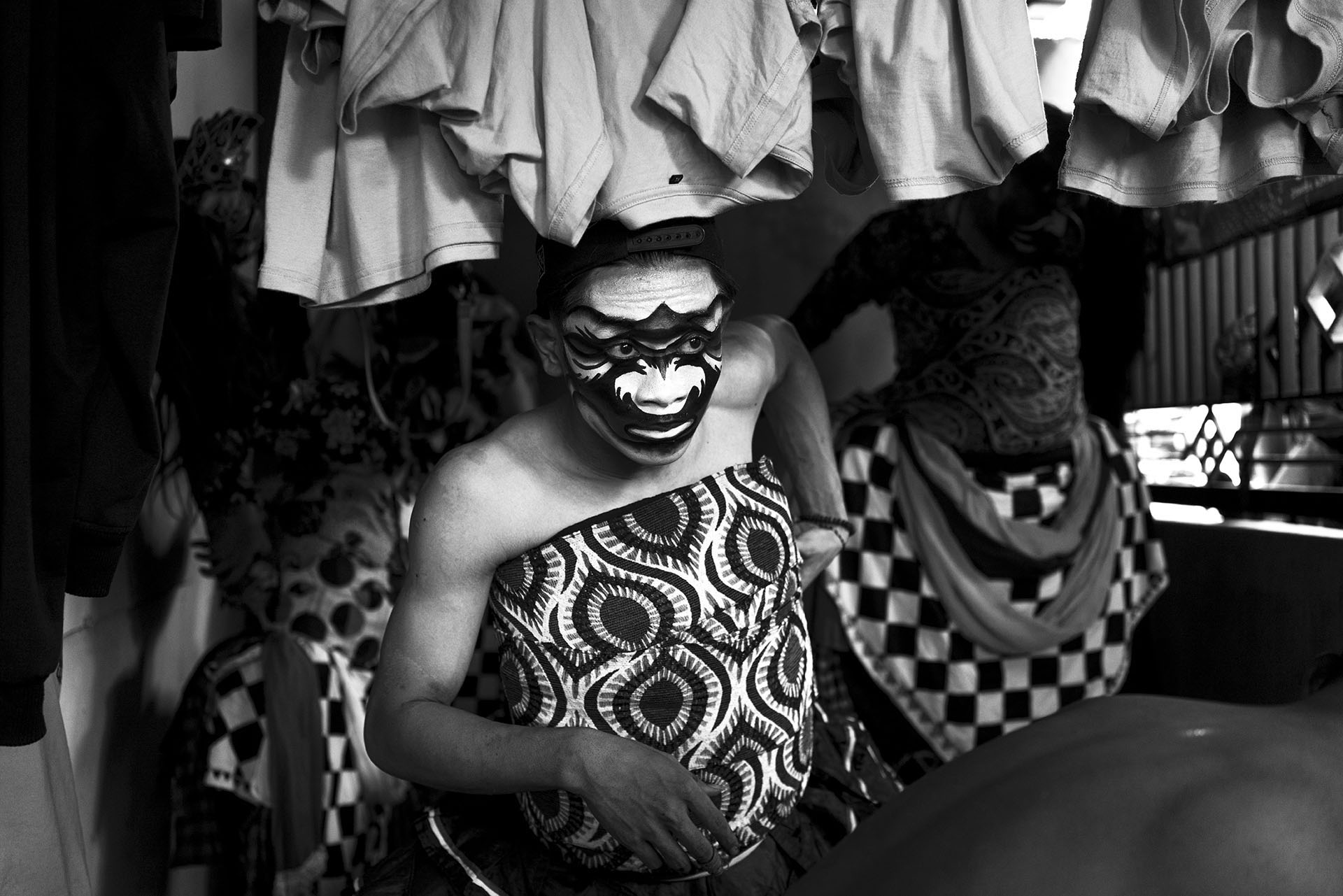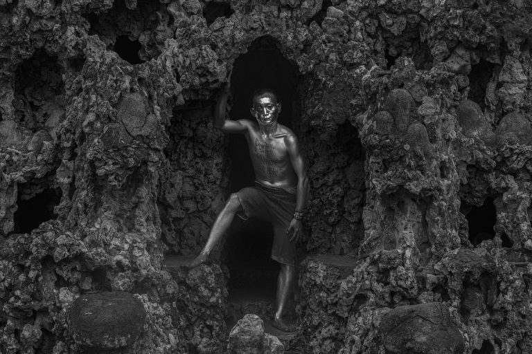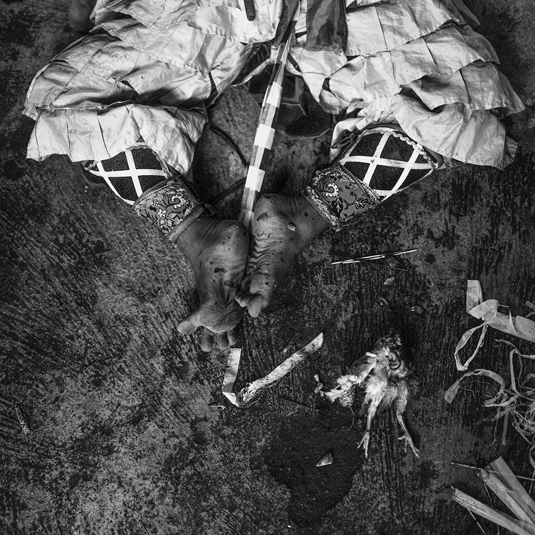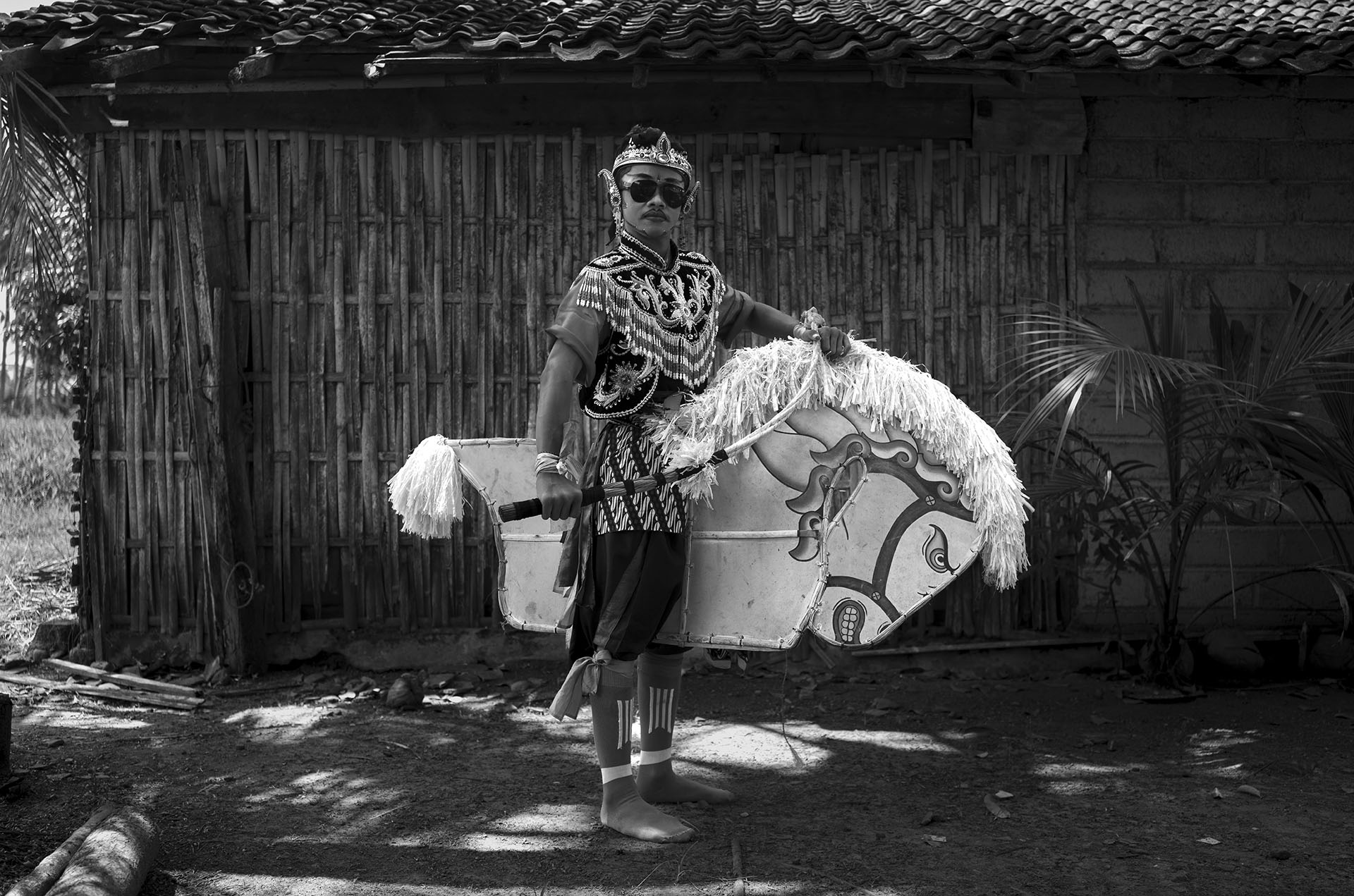 Le traitement visuel repose sur un travail approfondi de l’ombre, du clair-obscur et de la texture. La richesse chromatique de l’environnement culturel de Java devient un “outil de révélation”. Il me permet de sculpter les noirs et les blancs avec précision et intention, et de rendre perceptibles la tension, la poussière, l’effort, la fatigue et la charge rituelle qui traversent les scènes. J’alterne images prises sur le vif et portraits posés pour rendre compte de la fierté avec laquelle ces jeunes assument leurs rôles, leurs costumes et leur héritage.