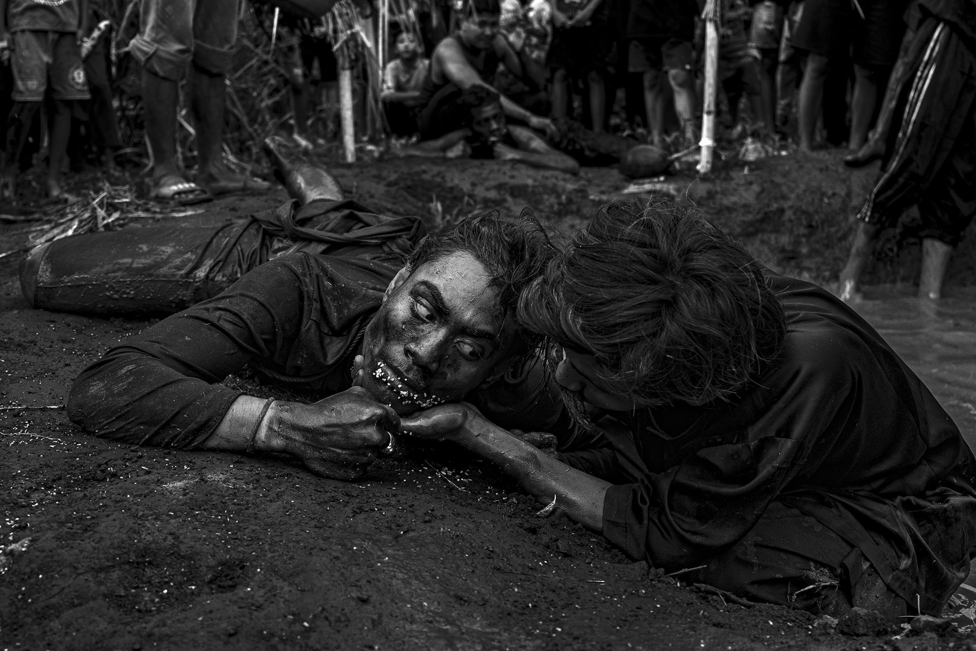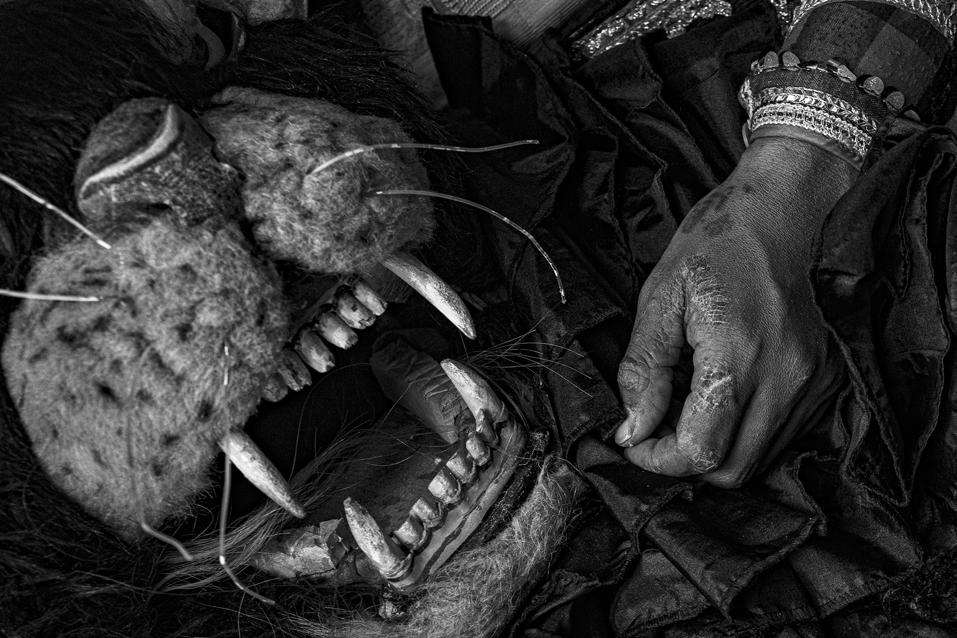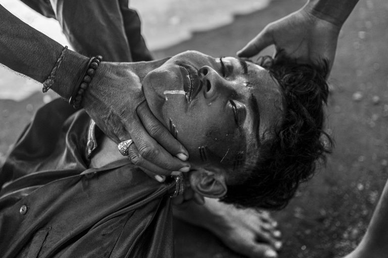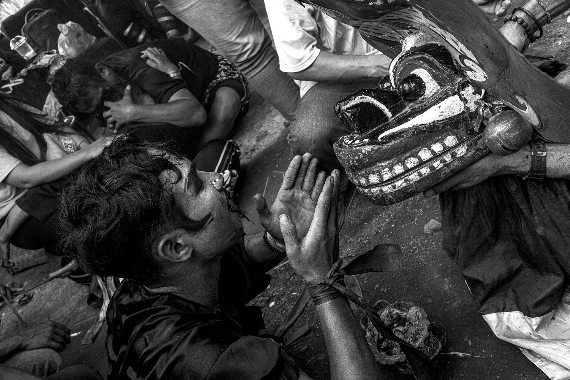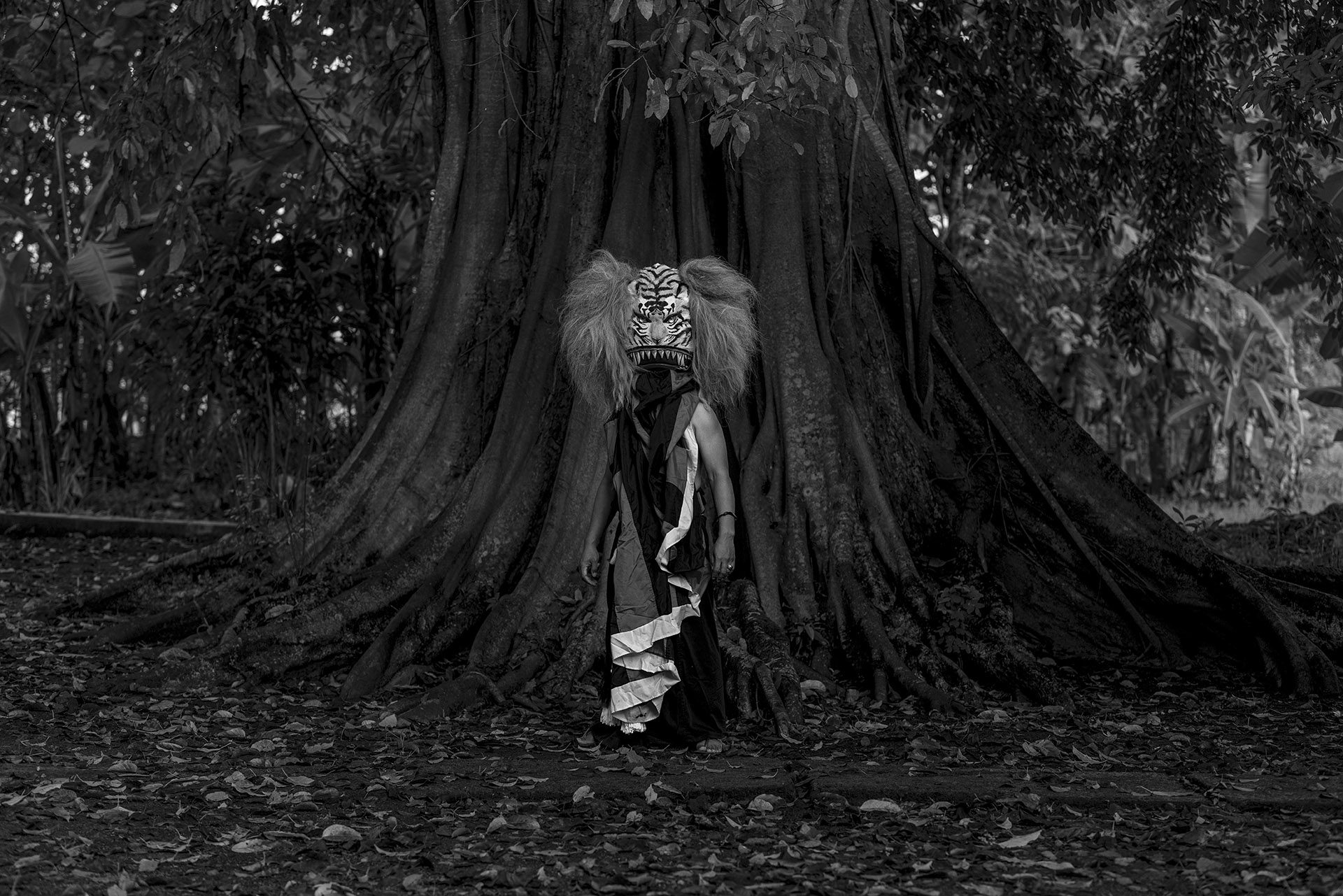 Le traitement visuel repose sur un travail approfondi de l’ombre, du clair-obscur et de la texture. La richesse chromatique de l’environnement culturel de Java devient un “outil de révélation”. Il me permet de sculpter les noirs et les blancs avec précision et intention, et de rendre perceptibles la tension, la poussière, l’effort, la fatigue et la charge rituelle qui traversent les scènes. J’alterne images prises sur le vif et portraits posés pour rendre compte de la fierté avec laquelle ces jeunes assument leurs rôles, leurs costumes et leur héritage.
