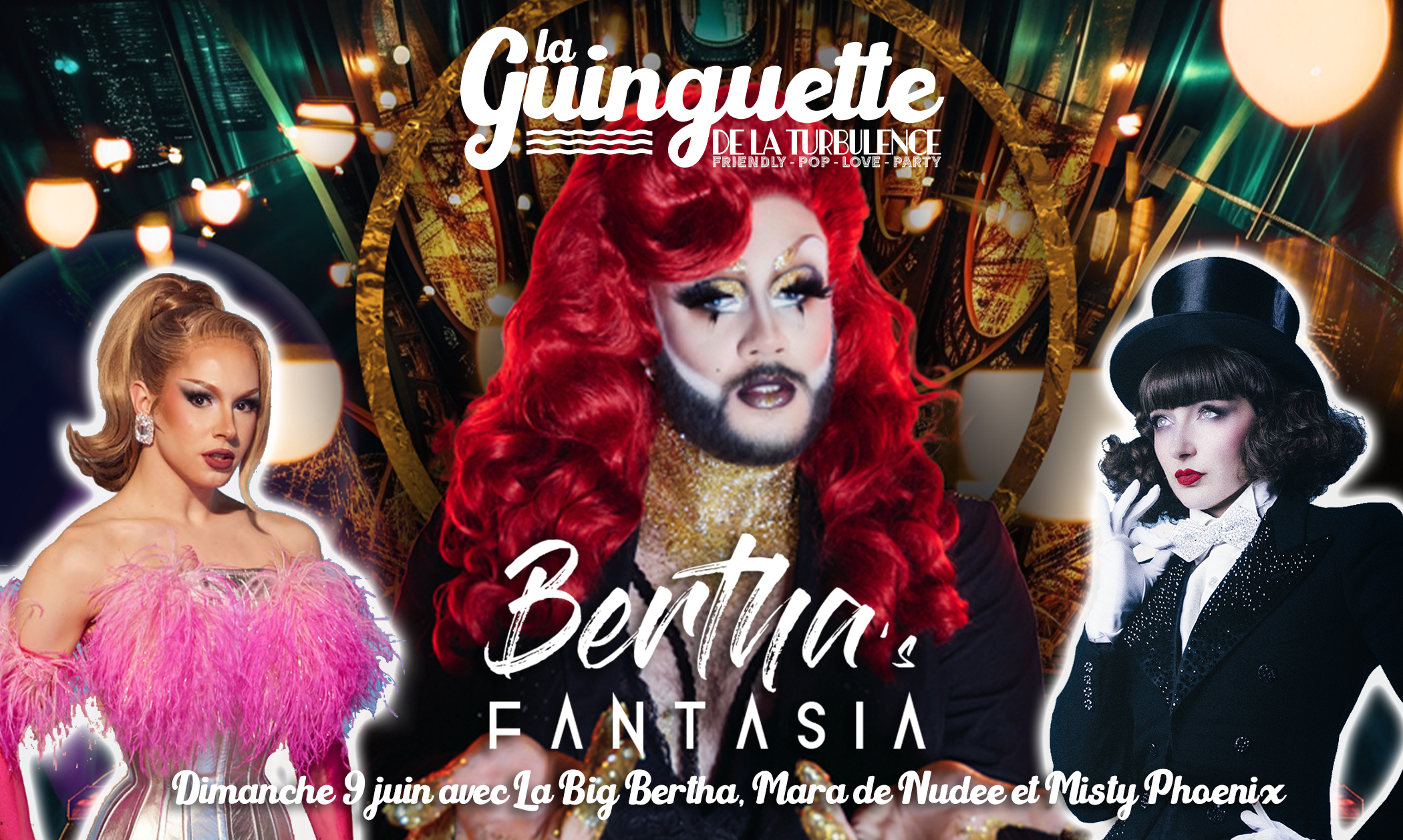La Guinguette de La Turbulence X Bertha's FANTASIA Tous les dimanches de l'été de 18h à 2h au Quai de la Photo venez vivre l'ambiance "Guinguette Friendly" de La Turbulence La Guinguette de La Turbulence reçoit La Big Bertha (Drag Race France saison 1), Mara de Nudée et Misty Phoenix (Drag Race France saison 3), quelques […] |