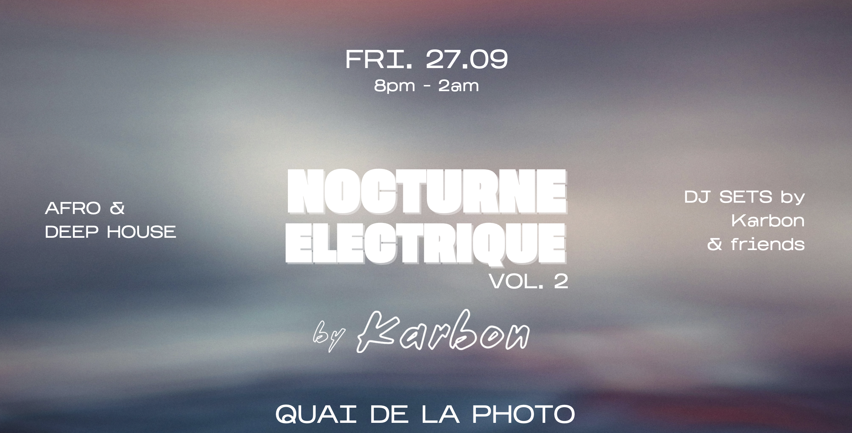 Nocturne Electrique Vol.2 by Karbon Après une 1ère édition en juin, Karbon repose les amarres au Quai de la Photo pour une seconde édition de sa soirée « Nocturne Electrique » 🔥 Rendez-vous à partir de 19h30 et jusqu'à 2h pour trinquer et bouger sur les sets de Karbon et Canaille. Au programme : DJ […]